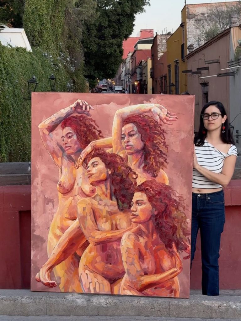 Pues para la pintora al momento de plasmar su obra en colores es que ella divide en una especie de rompecabezas los tintes que va a utilizar para proceder a pintar con luz natural series como “Luz y Sombra” que hablan precisamente de esta dualidad que habita en los seres humanos con un enfoque particular en los estereotipos de género contrastando al ser vivo que somos contra lo que se espera de nosotros al haber nacido hombres o mujeres.