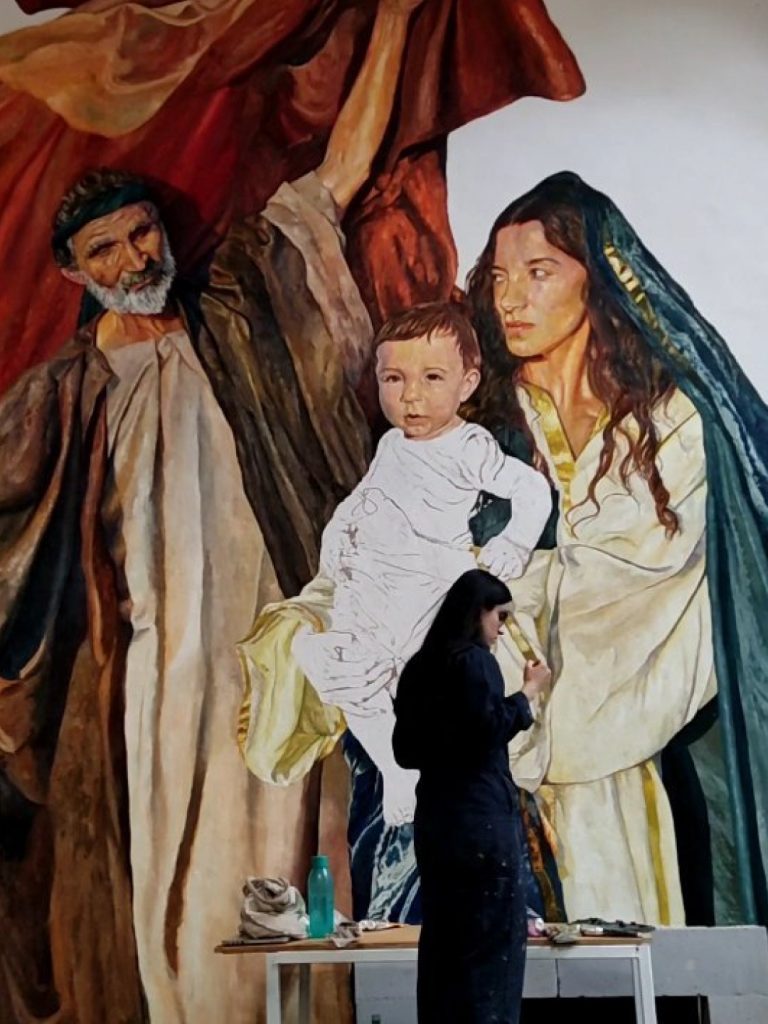 Claro ejemplo de esta tesis se puede apreciar en la capilla que la artista está pintando los murales misma de la que tomó como inspiración el poema de San Francisco de Asís conocido como “El Cántico de las Criaturas” en el que habla de los 4 elementos.